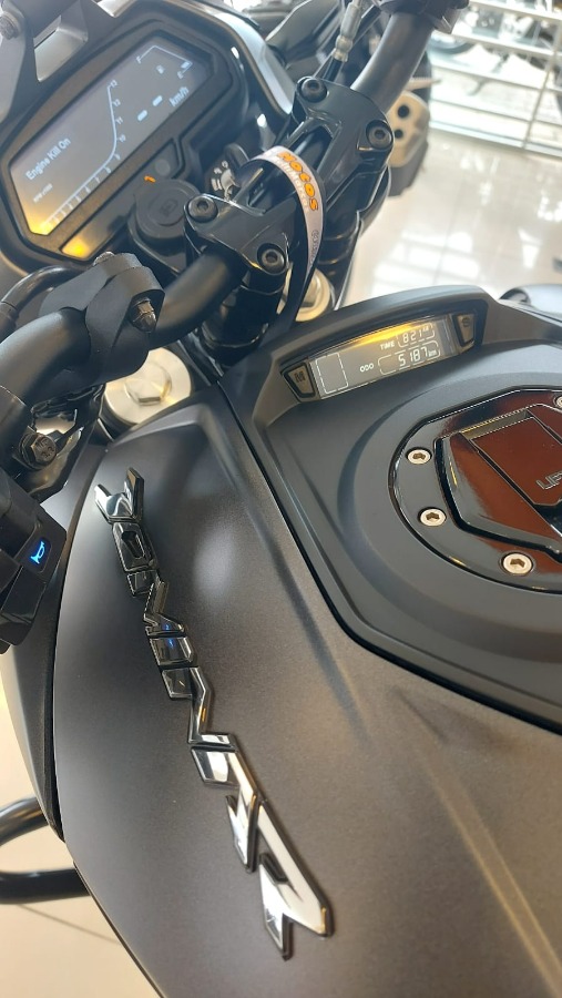 Hs motos multimarcas vende ou troca: Bajaj Dominar 400 2025. Único dono. Com apenas 5185 km rodados. Manual e chave reserva. Óleo e filtros trocados na concessionária. Suspensão traseira mono amortecida. Suspensão dianteira invertida de 43 mm. Display LCD bipartido. Freios Abs de série nas duas rodas.. Iluminação toda Full Led. Motor monocilindrico com refrigeração líquida. Potência de 40 CV a 8800 rom. Câmbio de 6 marchas Tanque combustível de 13 litros. Financiamos com ou sem entrada mediante aprovação bancária. Cartão de crédito em até 21x com as taxas da operadora.